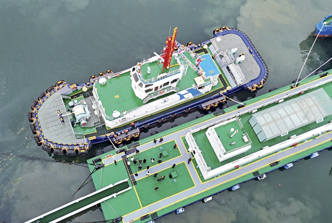 Le premier remorqueur à propulsion hydrogène-électricité de Chine a été mis en service au port de Qingdao (Shandong), le 26 juin 2025.