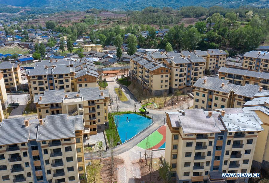 Photo aérienne prise le 13 mai 2020 montrant une communauté nouvellement construite dans le cadre de la lutte contre la pauvreté via la relocalisation de populations, dans le comté de Zhaojue de la province du Sichuan (sud-ouest de la Chine). (Jiang Hongjing / Xinhua)