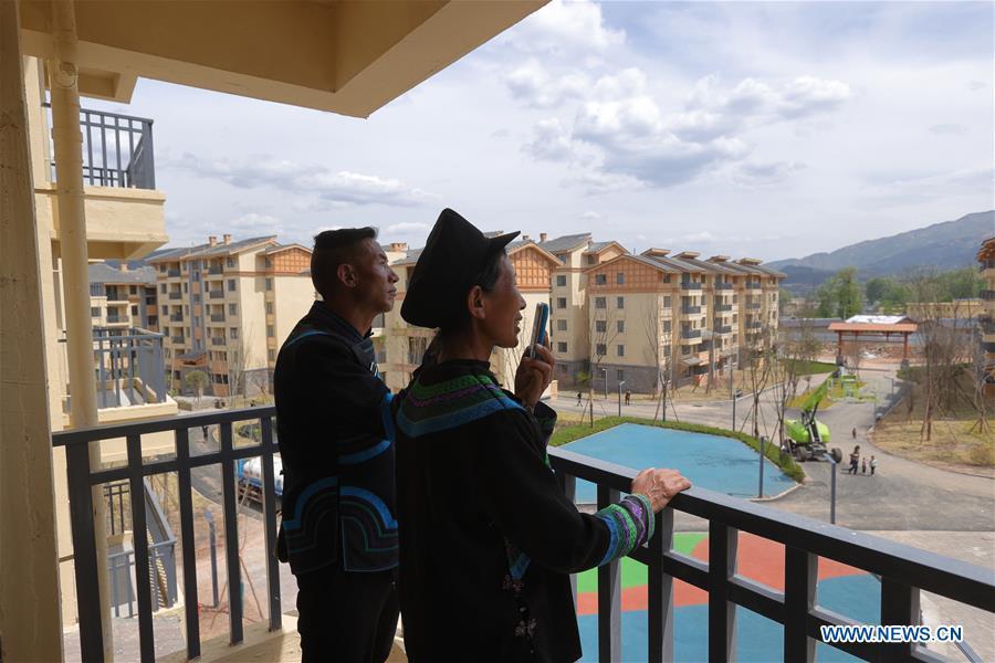 Des villageois descendent une échelle d’acier pour quitter leur village d'Atulieer et s'installer dans leur nouvelle maison située dans une communauté nouvellement construite dans le cadre de la lutte contre la pauvreté via la relocalisation de populations, dans le comté de Zhaojue de la province du Sichuan (sud-ouest de la Chine), le 13 mai 2020. (Jiang Hongjing / Xinhua)