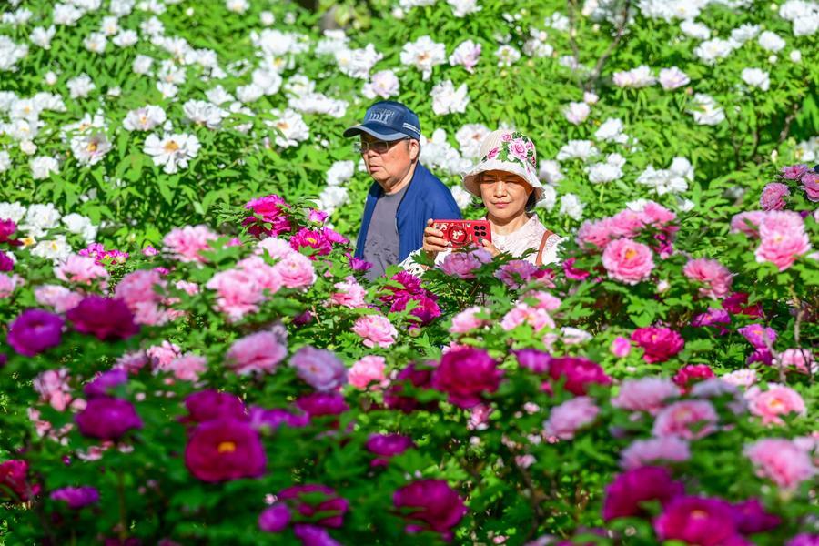 Une touriste prend des photos de fleurs dans un jardin botanique pendant les congés de la fête de Qingming à Luoyang, dans la province chinoise du Henan (centre), le 4 avril 2026. (Photo : Li Weichao)