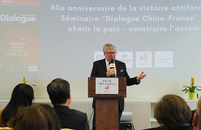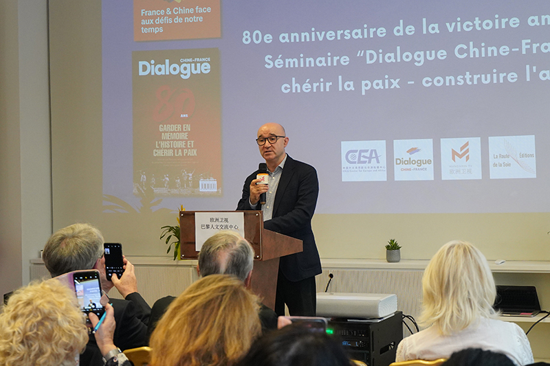 Le 27 septembre, le Séminaire « 80e anniversaire de la victoire antifasciste – Dialogue Chine-France : chérir la paix, construire l’avenir » s’est tenu à Paris, en France. Y ont participé Zhao Lijun, directrice du Centre pour l’Europe et l’Afrique (La Chine au présent) du Groupe international de communication de Chine ; Wang Jian, ministre-conseiller de l’Ambassade de Chine en France ; Matthieu Grandpierron, directeur du département de sciences politiques à l’ICES en France et professeur agrégé en relations internationales ; Jean Pégouret, président de Saphir Eurasia et expert en géopolitique ; Yves-Jean Gallas, vice-président du Mouvement de la Paix ; Rémy Herrera, chercheur au CNRS et économiste ; Lyazid Benhami, vice-président de l’Association des amitiés franco-chinoises de Paris, ainsi qu’une cinquantaine de représentants d’universités, de groupes de réflexion, d’organisations non gouvernementales et de médias de Chine et de France.