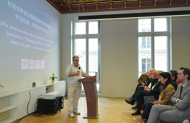 Wang Jian, mandaté par l’ambassadeur Deng Li, a représenté l’Ambassade de Chine en France pour adresser ses vives félicitations à l’occasion de l’ouverture de ce séminaire. Il a souligné que chérir la paix signifie garder la mémoire de l’histoire et la respecter, adhérer à une vision juste de l’histoire, et défendre fermement les acquis de la victoire de la Seconde Guerre mondiale ainsi que l’ordre international d’après-guerre. Il s’est félicité qu’un nombre croissant de citoyens français et européens commençaient à comprendre la Résistance chinoise, et que les chercheurs accordaient une importance accrue à son étude. Il a affirmé que ce séminaire était des plus opportuns car il permettait à la société française de mieux appréhender la contribution, le rôle et la place de la Résistance chinoise. Il a ajouté que cette compréhension historique offrait ainsi des clés pour mieux saisir les réalités de la Chine contemporaine, sa société et sa politique étrangère, précisant que cette initiative visait à approfondir la solidarité et l’amitié sino-françaises, et à consolider la base populaire des relations entre les deux pays.