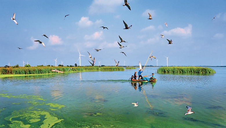 En plein été caniculaire, un visiteur du bourg de Nugusitai, dans la ville de Tongliao, région autonome de Mongolie intérieure, aurait bien du mal à reconnaître le paysage. Jadis balayées par les vents et couvertes de sable à perte de vue, les collines arborent désormais une parure végétale luxuriante. De hautes éoliennes tournent en silence, tandis que des zones humides scintillent entre les bosquets, offrant un havre de paix aux oiseaux d’eau.