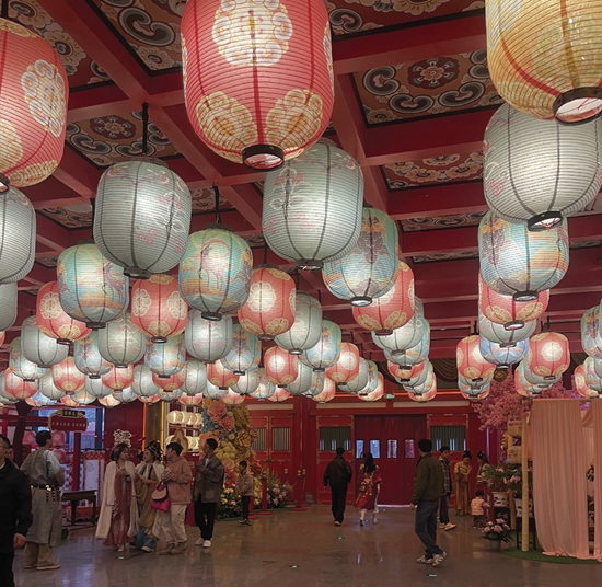 À la nuit tombée, une effervescence douce enveloppe le centre commercial Great Tang All Day Mall (« La Cité de la dynastie Tang qui ne dort jamais »), à Xi’an (Shaanxi). Des silhouettes en hanfu (tenue traditionnelle chinoise) et des pavillons aux toits relevés sèment un vertige temporel, vous transportant mille ans en arrière, au cœur de la prospère capitale de Chang’an sous la dynastie Tang (618-907).