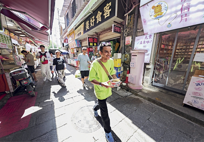 Un vlogger étranger tourne des vidéos dans le dialecte de Wuhan (Hubei) pour présenter des spécialités culinaires en juillet 2024.