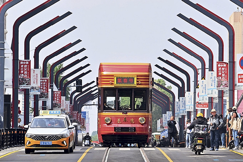 Le tramway à hydrogène « Qingchun » circule à Changchun (Jilin), le 4 juin 2025.