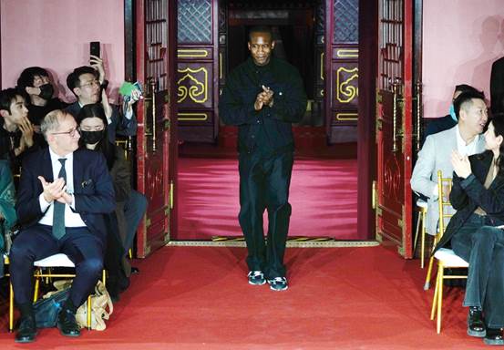 Le directeur artistique Dan Sablon salue le public à l’issue du défilé Zadig&Voltaire de la Semaine de la mode de Chine (printemps 2026) dans la demeure du Prince Jun à Beijing, le 25 mars.