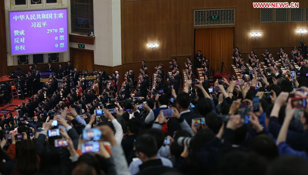 Xi Jinping a été élu à l'unanimité président chinois, samedi matin, lors de la session en cours de la 13e Assemblée populaire nationale.
