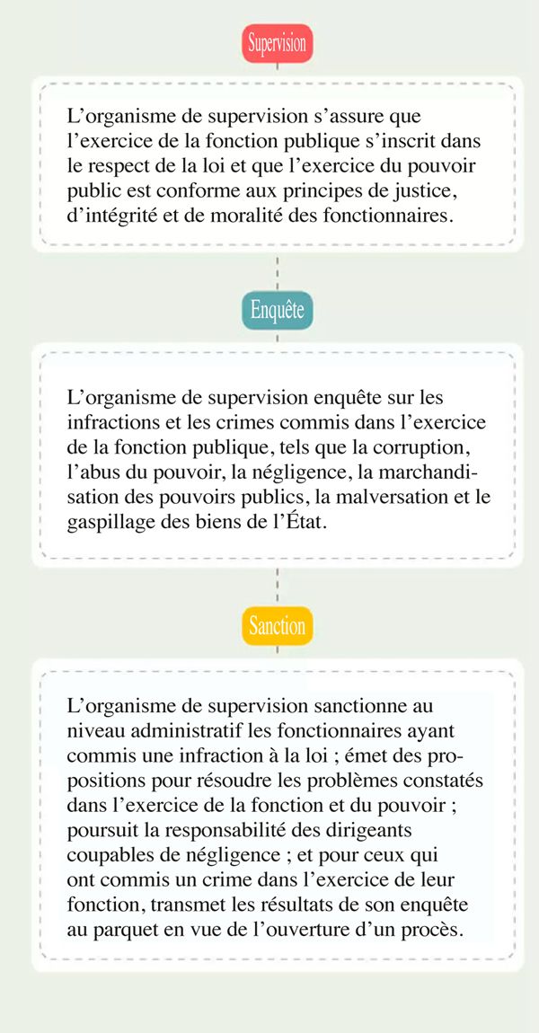 Depuis le XVIIIe Congrès du Parti communiste chinois (PCC), la lutte contre la corruption a été majestueuse et les résultats, profondément ressentis par le peuple, ont été remarquables, mais comment élaborer une architecture législative et un système opératoire améliorés de sorte que sous la pression des lois, les personnes dotées de pouvoirs publics perçoivent la faute comme interdite, n’osent pas commettre la faute et se refusent à la faute ? Telle est la question qui a toujours alimenté la réflexion du Comité central du PCC.