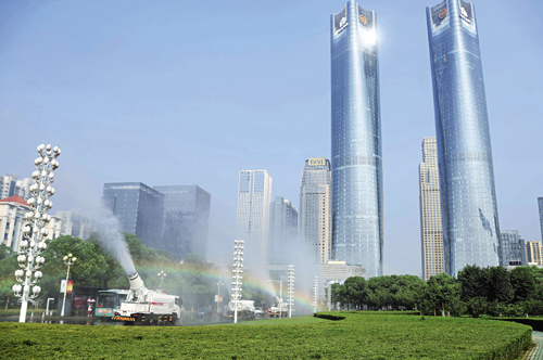 La poussière est une des grandes « sources » de pollution de l’air. En avril 2014, la ville de Nanchang a décidé de mettre en place des mesures rigoureuses pour lutter contre ce « désastre ». Cette opération d’assainissement de l’environnement, entreprise par le Bureau de la protection de l’environnement de Nanchang conjointement avec plusieurs départements de la ville, dont la Commission de la construction et la Commission de la gestion urbaine, a été l’occasion d’utiliser pour la première fois la technique de l’échantillonnage aléatoire par ordinateur pour déterminer les chantiers de construction à contrôler. La même année, 27 inspections et contrôles ont été effectués sur 270 chantiers de construction. Et la lutte contre la pollution résultant de la poussière émise sur les chantiers de la zone urbaine et de la zone de développement industriel a été intégrée à l’évalution trimestrielle de la gestion urbaine.